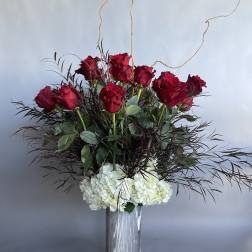 Price: $300.00Low and Lush. 35 roses in stunning vessel.