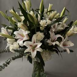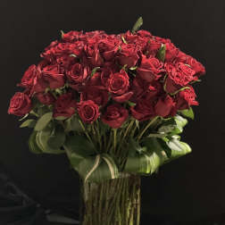 Price: $300.00Sold OUT. Low and Lush. 35 roses in stunning vessel.